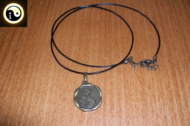 SPECYFIKACJA: Stan: nowe Marka: Art-Shakt Materiał: metal Kolor: stare złoto Średnica: 20mm Kolor sznurka: czarny Długość sznurka: 45cm